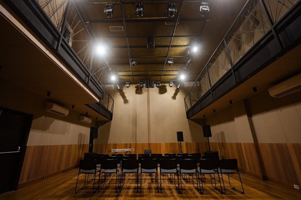 Desde o início, trabalhamos nessa mediação entre as escalas da arquitetura e da cenografia, entendendo as soluções não apenas como suporte para os espetáculos, mas como parte criadora da própria cena. O resultado é uma sala que muda junto com a programação. Pode assumir a configuração de plateia clássica voltada para o palco, palco no chão em mesmo nível da plateia, palco central em arena, eventos em pé com tudo recolhido nas bordas ou até uma roda de samba em que os praticáveis se transformam em mesas para os músicos. Em resumo, um espaço vivo, que se adapta a cada montagem.